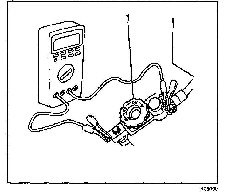 12. Connect the digital multimeter to the test switch tool terminals (1).