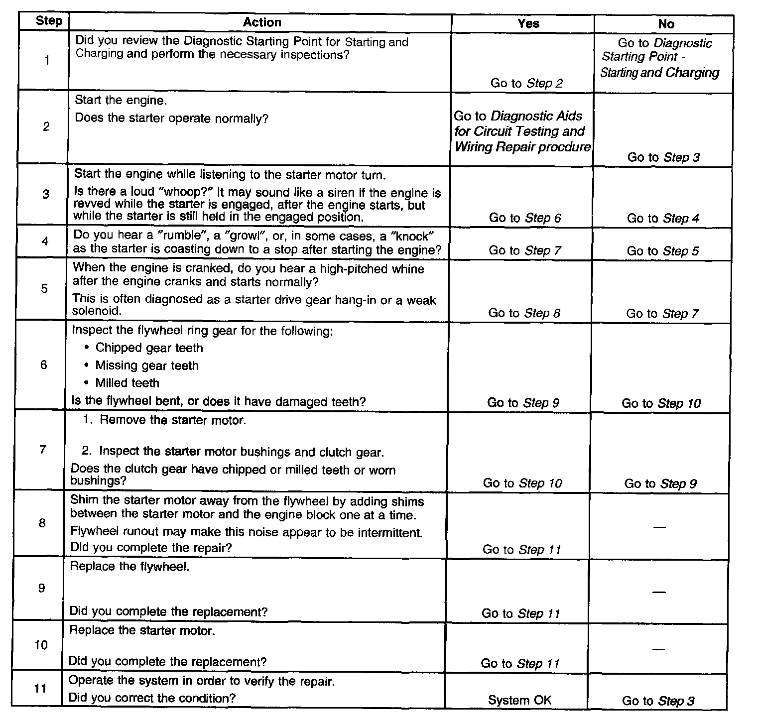 STARTER MOTOR NOISE DIAGNOSISDIAGNOSTIC AIDS