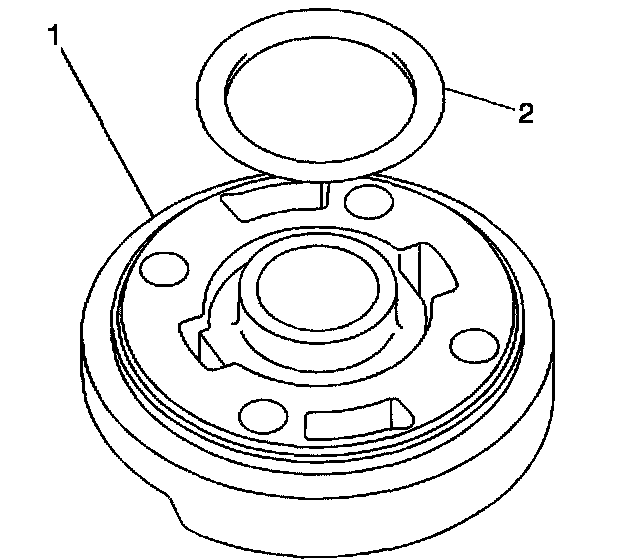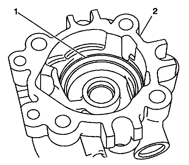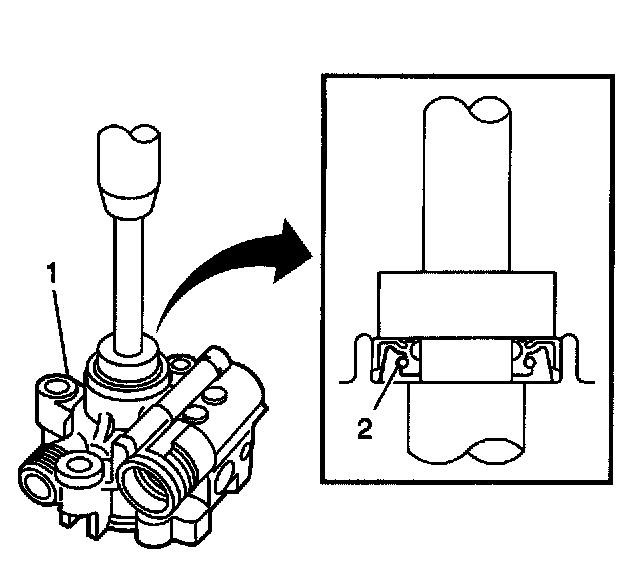 2. Align the pump shaft seal with the pump front housing (1). Verify the edge of the outer lip will be toward the inside of the pump.