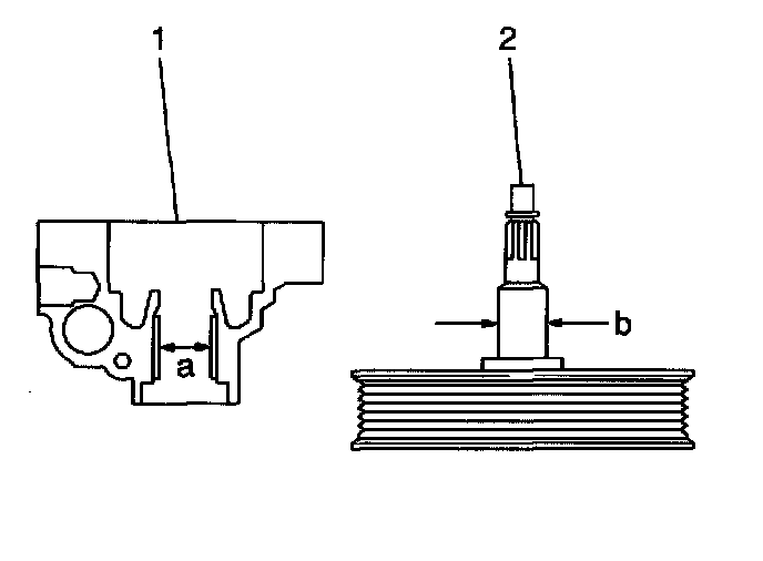 1. Measure the outside diameter (b) of the pump shaft (2).