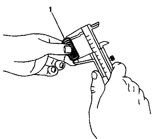 8. Measure the free length of the flow control valve spring (1). If the free length of the spring is not within the specification, replace the pump.