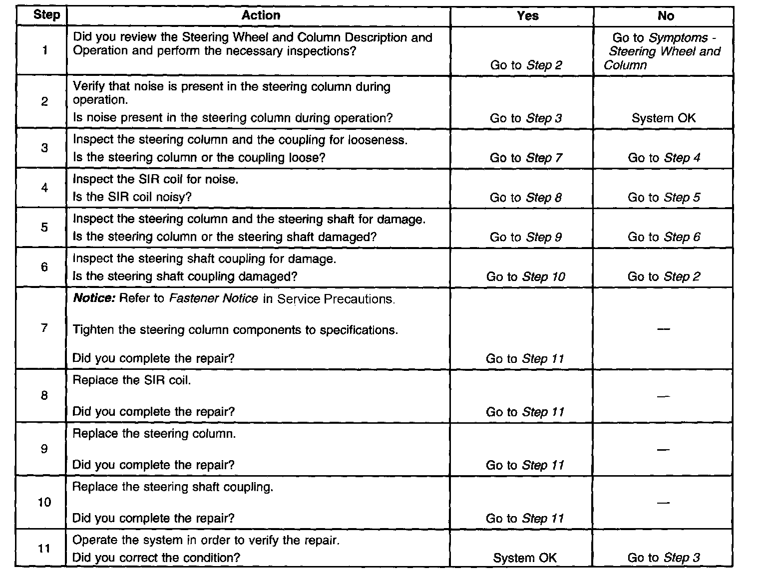 Noise In Steering Column / Steps 1 - 11: