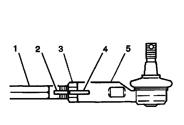 1. Install the outer tie rod (5) to the inner tie rod (1). Align the outer tie rod with the matchmarks (2, 4). Do not tighten the lock nut (3).