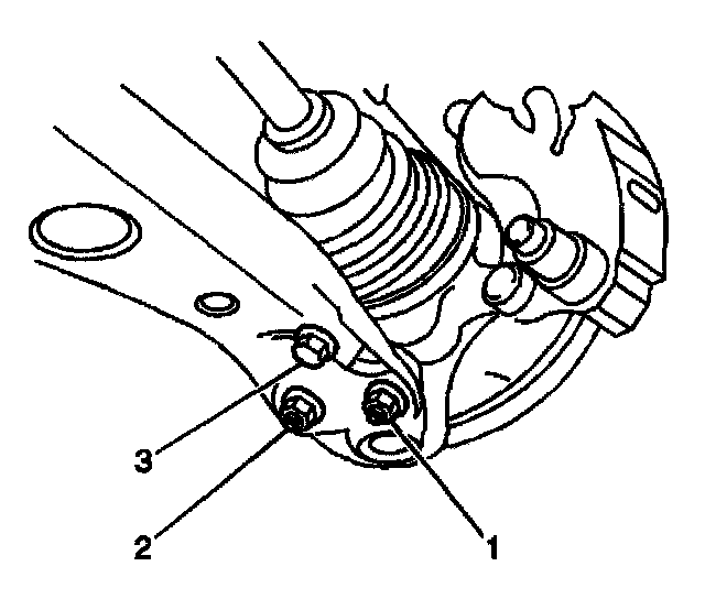 3. Remove the 2 nuts (1, 2) and the bolt (3).