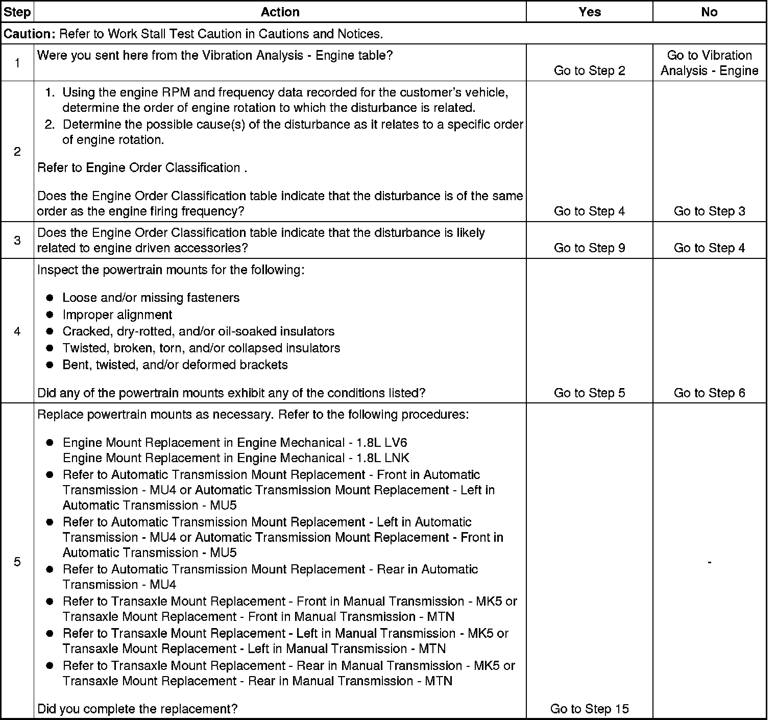 4. A loose, damaged, misaligned, or defective powertrain insulator and/or bracket may create a transfer path into the passenger compartment.