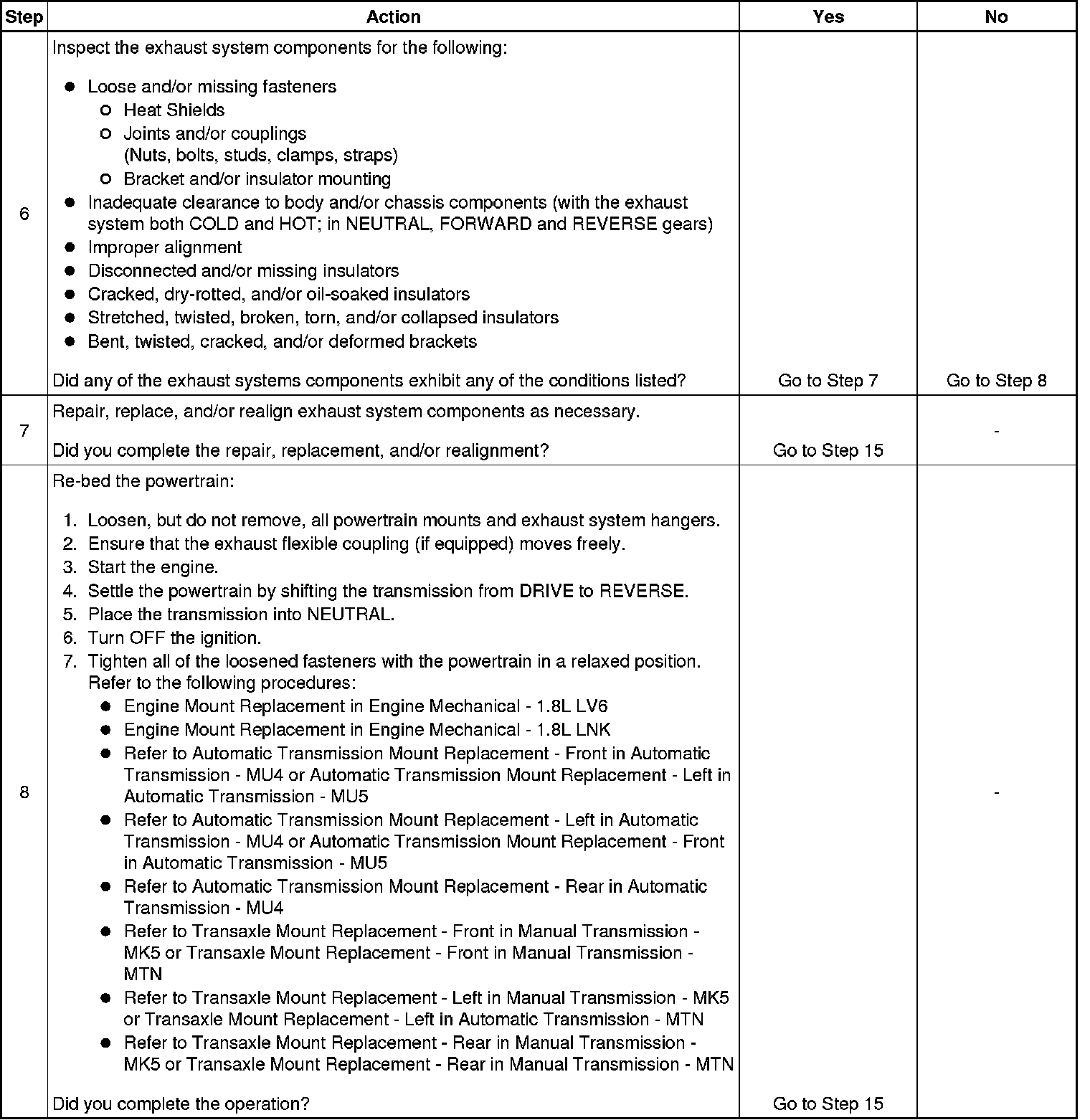 When loosening powertrain mounts in order to re-bed the powertrain observe the following: