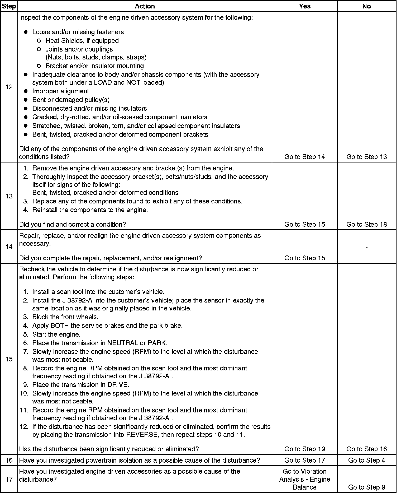 If a disturbance is still present, but the characteristics have NOT been altered, it is NOT likely that these component systems are acting as a transfer path for engine firing frequency or a first order engine disturbance.
