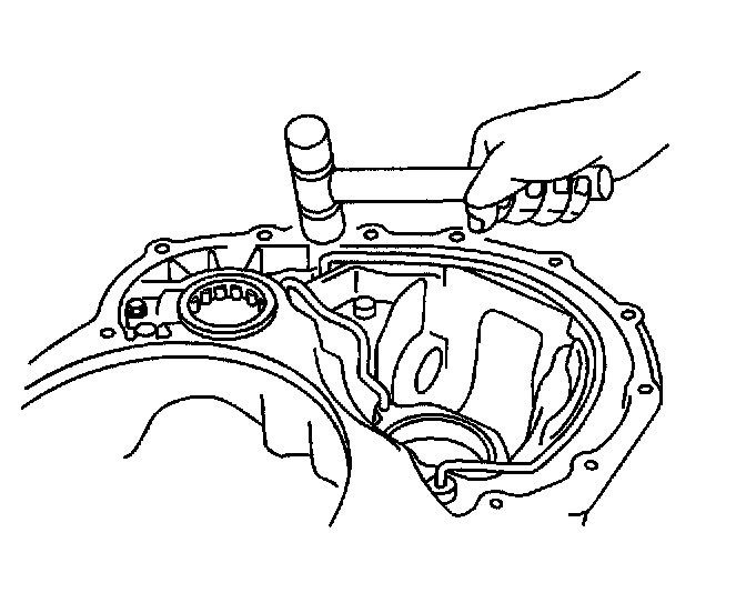 152. Using a press, install the underdrive roller bearing in the transaxle housing.