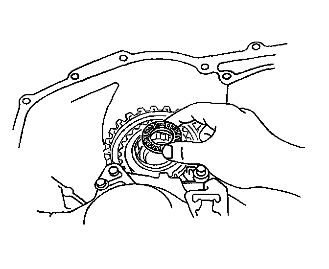186. Install the assembled bearing and race with the thrust needle roller bearing facing upward.