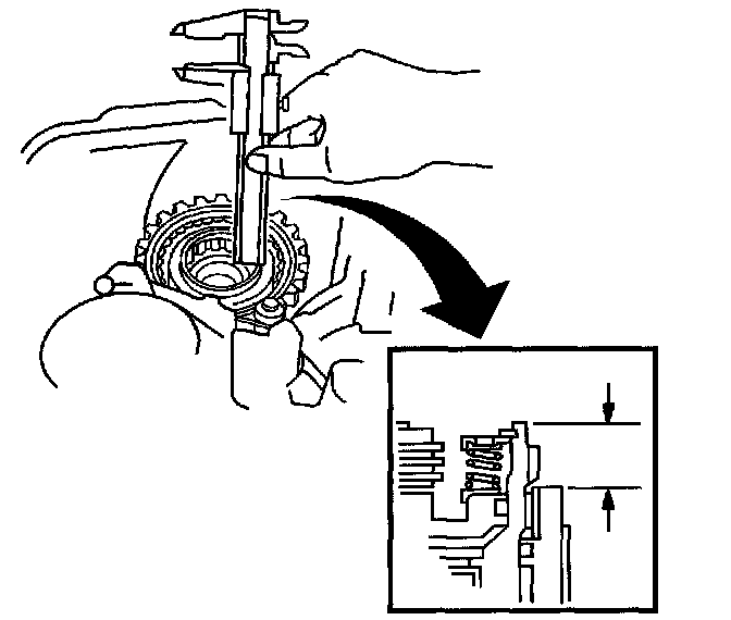 198. Using Vernier Calipers, measure the distance between the tip of the countershaft and the bolt seat of the clutch support. The installation height should be 33.3 - 35.5 mm (1.311 - 1.398 inch).