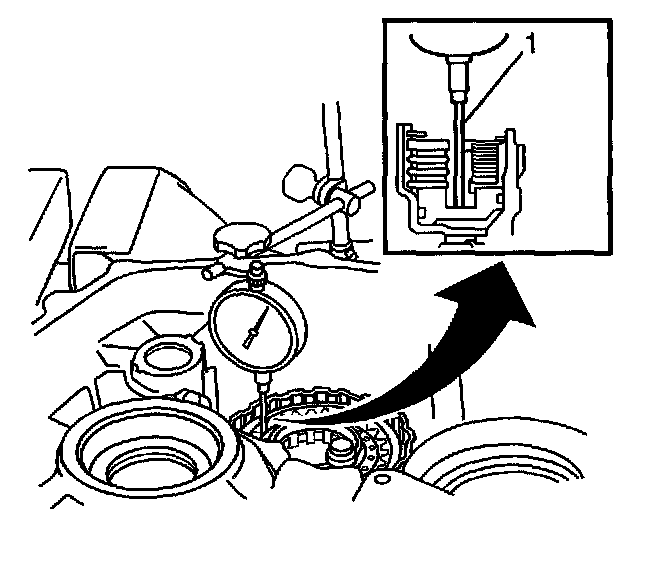 177. Using a dial indicator, measure the underdrive brake pack clearance.