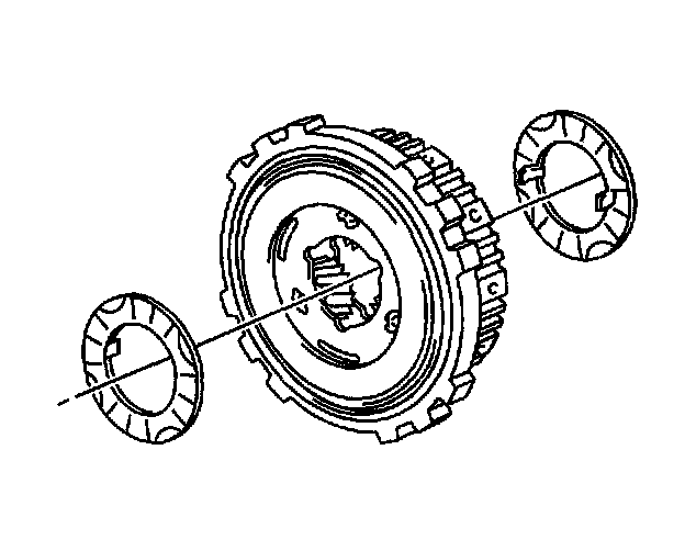 78. Remove the 2 planetary carrier thrust washers from the rear planetary gear assembly.