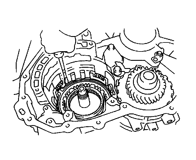 80. Using a feeler gage, measure the rear planetary pinion gear thrust clearance. If clearance exceeds 0.5 mm (0.020 inch), replace the rear planetary gear assembly.