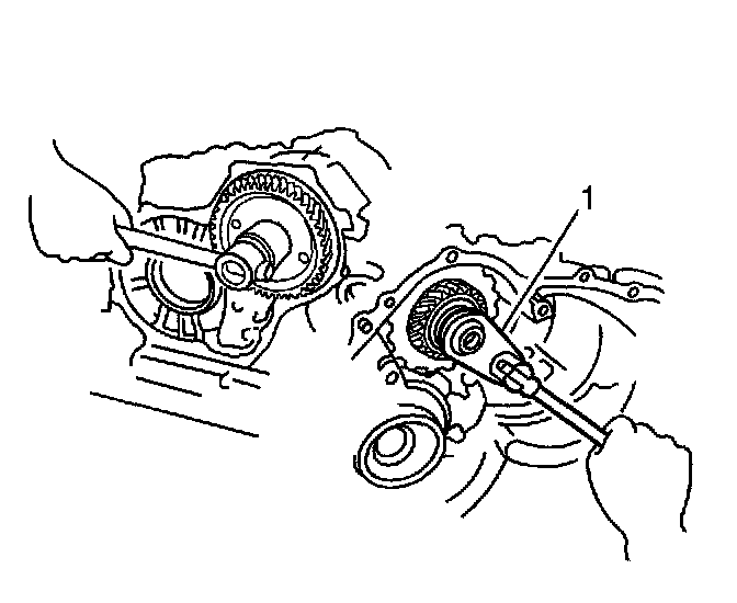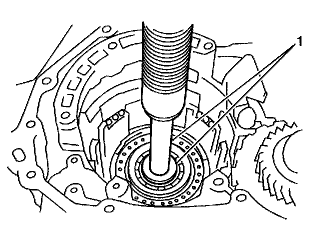 94. Using a press, remove the counterdrive gear (1) from the transaxle case.