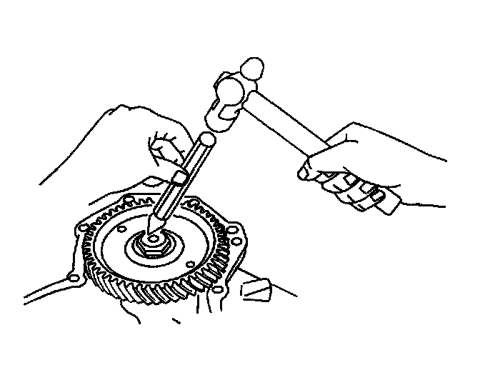 130. Using a suitable puller, remove the counterdriven gear roller bearing from the transaxle case.