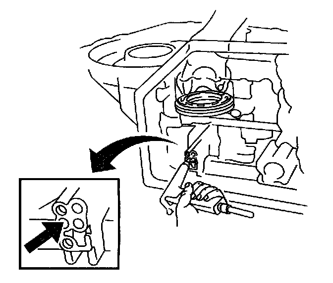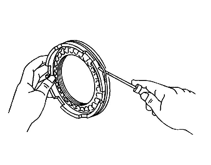113. Using a screwdriver, remove the underdrive clutch flange snap ring from the transaxle case.