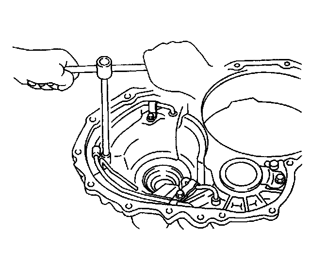 134. Remove the bolt and the underdrive roller bearing retainer from the transaxle case.