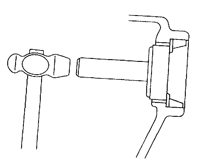141. Drive out the front drive pinion rear roller bearing outer race and adjusting shim from the transaxle case.