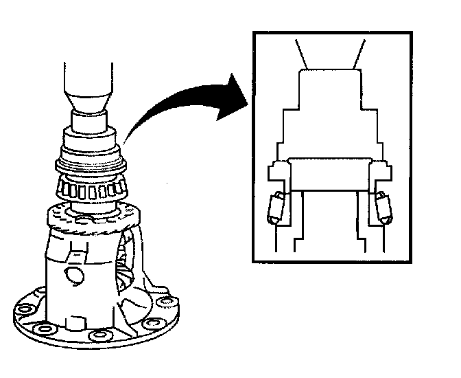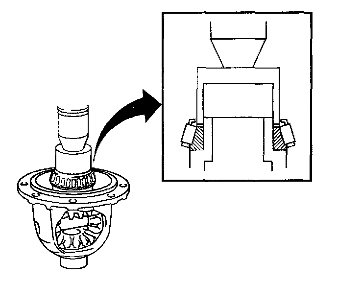 142. Using a press, install a new front drive pinion rear roller bearing on the differential case.