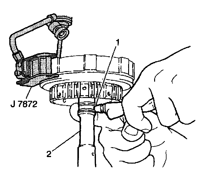 1.2. Place the J7872 plunger on the forward clutch piston and apply 392 - 785 kPa (57 - 114 psi) of compressed air into the forward clutch apply passage on the fluid pump.
