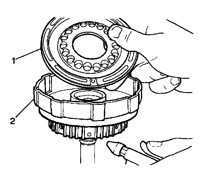 1.1. Temporarily install the direct clutch assembly onto the fluid pump (2) and the forward clutch assembly into the direct clutch assembly.