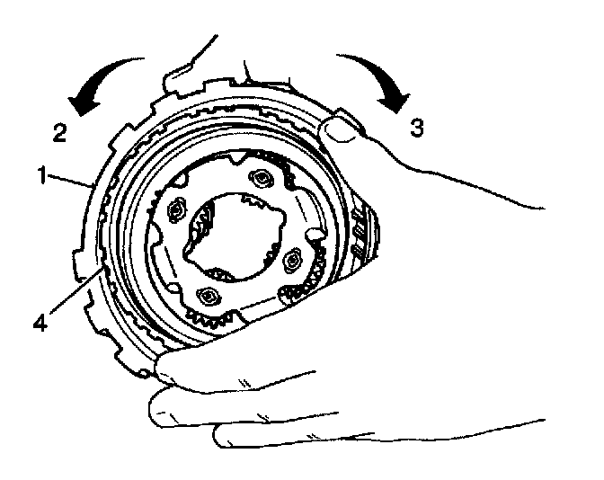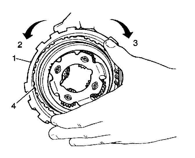 ^ The rear planetary carrier should turn freely in a counterclockwise direction (2) and should not turn in a clockwise direction (3).