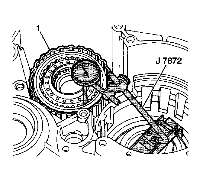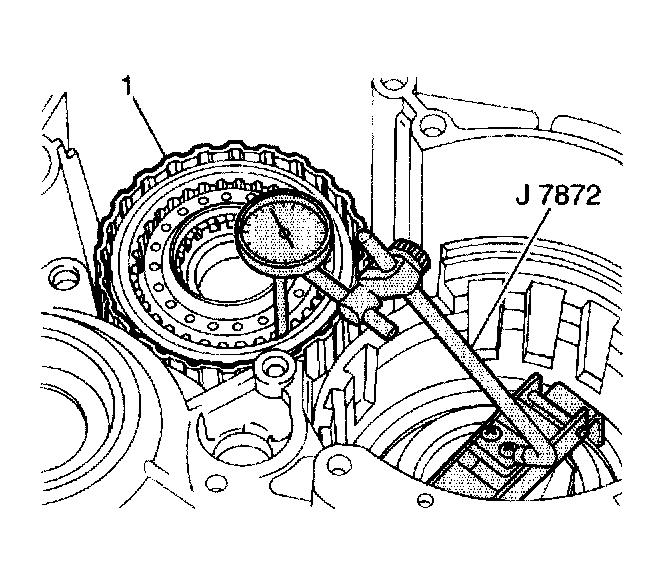 3. Use a J7872 to measure the underdrive clutch (1) piston stroke before disassembly.