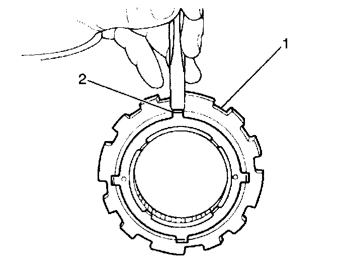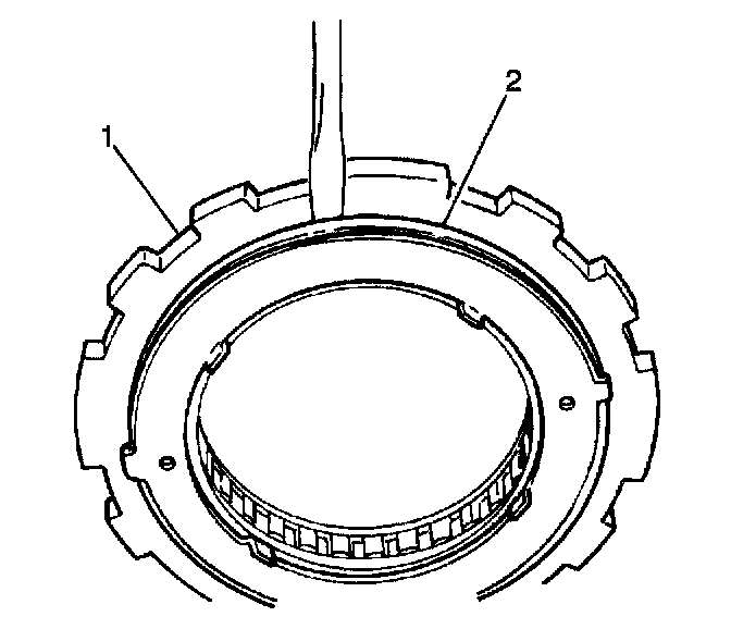 5. Remove the rear thrust plate (2) from the underdrive one-way clutch outer race (1).