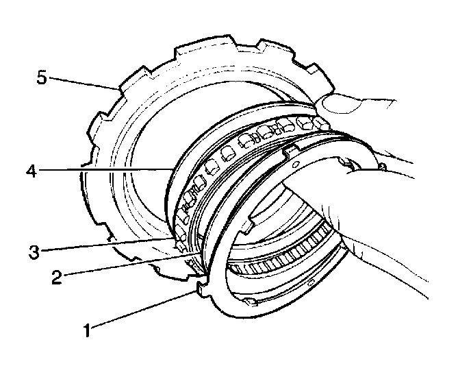 9. Install the underdrive one-way clutch sprag assembly (3) and retainers (2, 4) into the underdrive one-way clutch outer race (5).