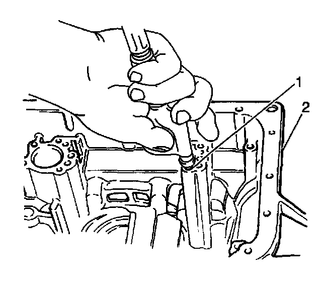 3. Install the underdrive clutch piston (1) into the underdrive clutch drum (2).