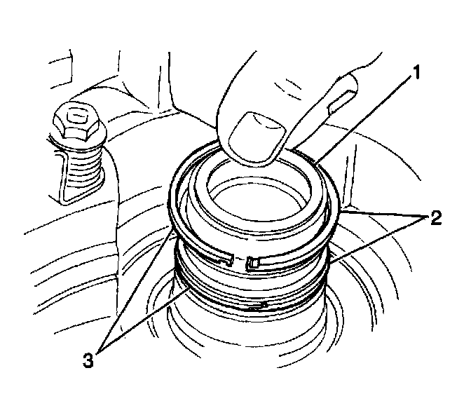 2. Apply J36850 in order to the two new underdrive clutch drum support seal rings (3).