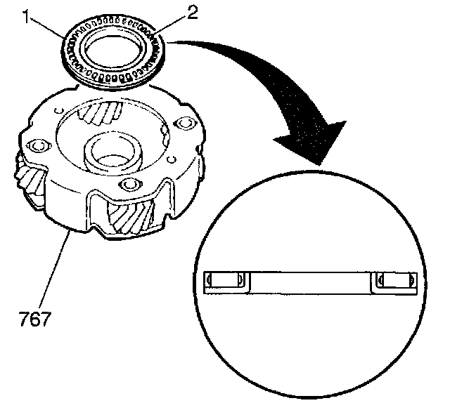 8. Install the front planetary carrier thrust bearing (1) into the front planetary carrier (767).
