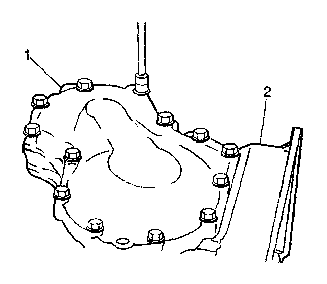 1. Remove the 13 bolts and the rear case cover (1) from the transaxle case.