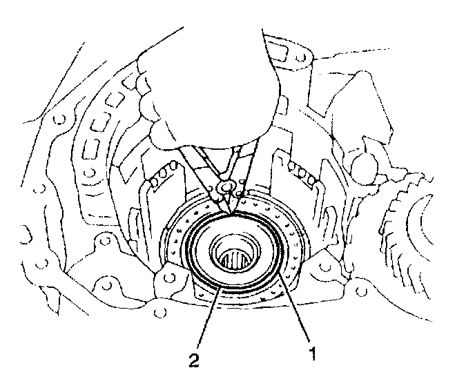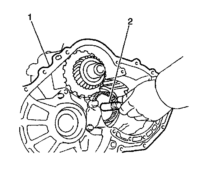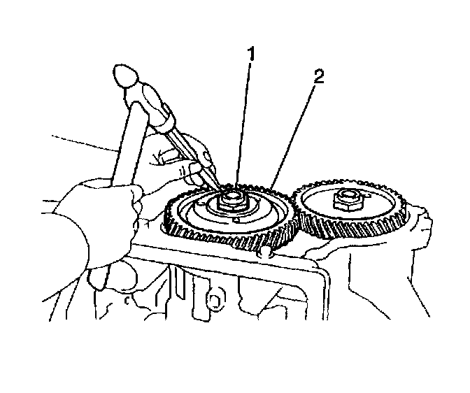 8. Remove the countershaft drive gear inner bearing (2) from the transaxle case.