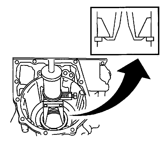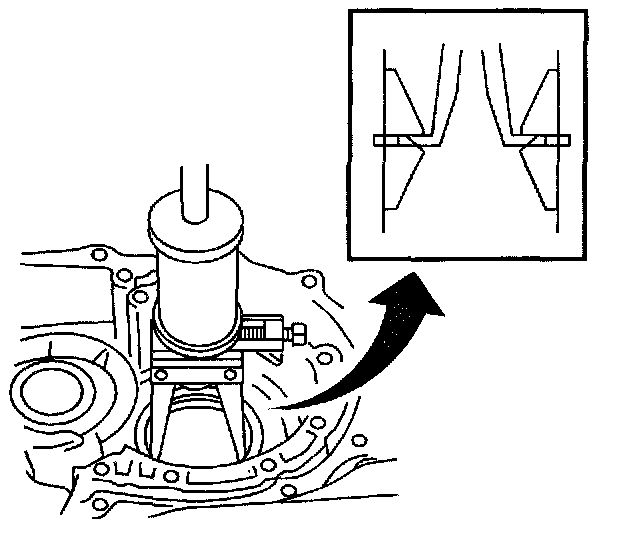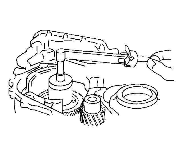 115. Using a bearing puller and slide hammer, remove the left side counter drive gear bearing outer race from the transaxle case.