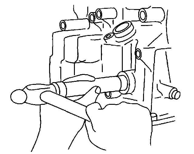 125. Using a seal driver and hammer, install a new manual valve lever shaft oil seal flush with the transaxle case.