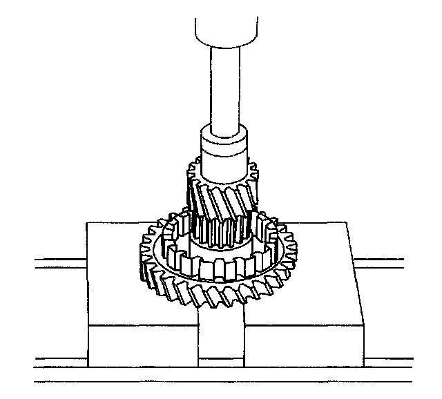 112. Using a press, remove the counter driven gear from the differential drive pinion.