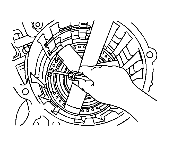 117. Using a screwdriver, remove the counter drive gear hole snap ring from the transaxle case.
