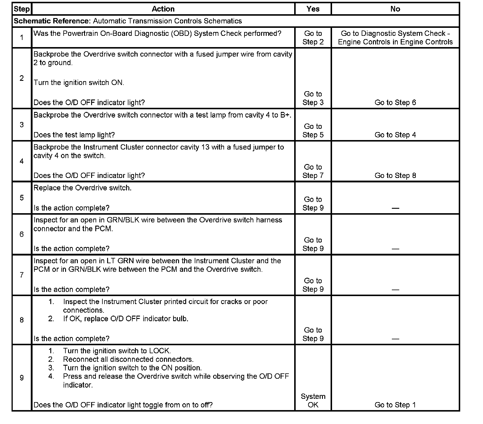 2. This step checks the O/D OFF indicator light by jumping the switch to ground.