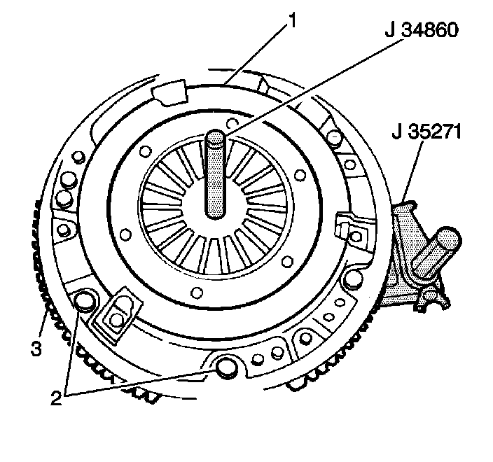 1. Install the clutch disc to the flywheel with the torsion springs offset toward the transaxle. Using a suitable clutch alignment arbor to center and hold in place the clutch disc on the flywheel.