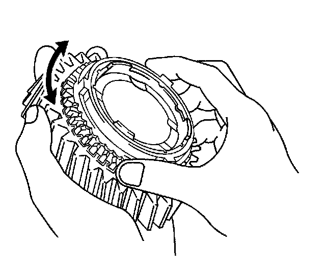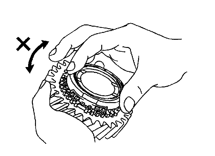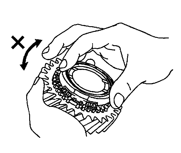 107. Check the 2nd gear braking action of the synchronizer ring. Turn the synchronizer ring in one direction while pushing it into the gear cone. Ensure that the ring locks. Replace the ring if necessary.