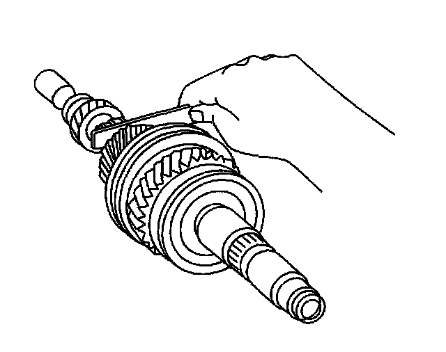 106. Using a feeler gage, measure the clearance between the synchronizer ring and the gear spline end. Minimum clearance is 0.75 mm (0.0295 inch). If the clearance is less than the minimum, replace the synchronizer ring.