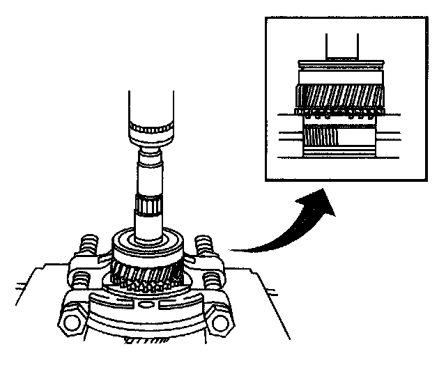 80. Using a feeler gage, measure the clearance between the synchronizer ring and the gear spline end. 3rd gear minimum clearance is 0.65 mm (0.0256 inch). 4th gear minimum clearance is 0.75 mm (0.0295 inch). If the clearance is less than the minimum, replace the synchronizer ring.