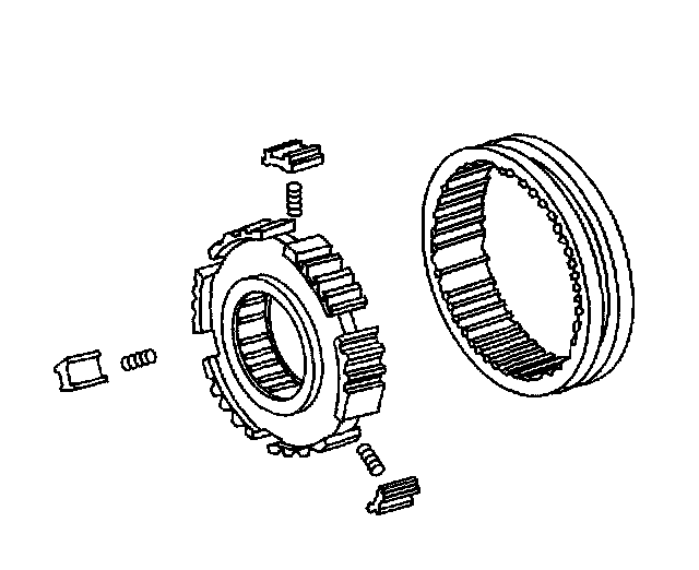 108. Using a feeler gage, measure the clearance between the synchronizer ring and the gear spline end. Minimum clearance is 0.70 mm (0.0276 inch). If the clearance is less than the minimum, replace the synchronizer ring.