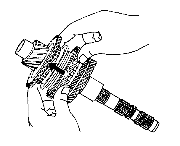 105. Check the 1st gear braking action of the synchronizer ring. Turn the synchronizer ring in one direction while pushing it into the gear cone. Ensure that the ring locks. Replace the ring if necessary.