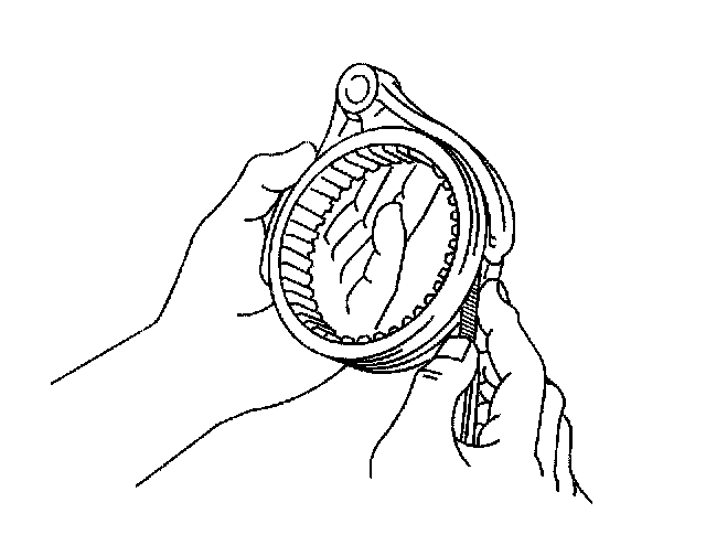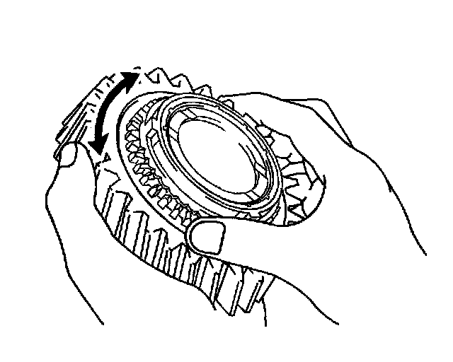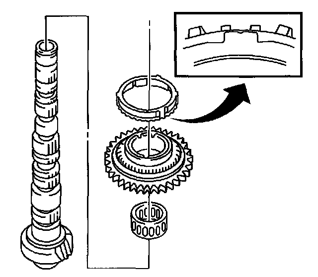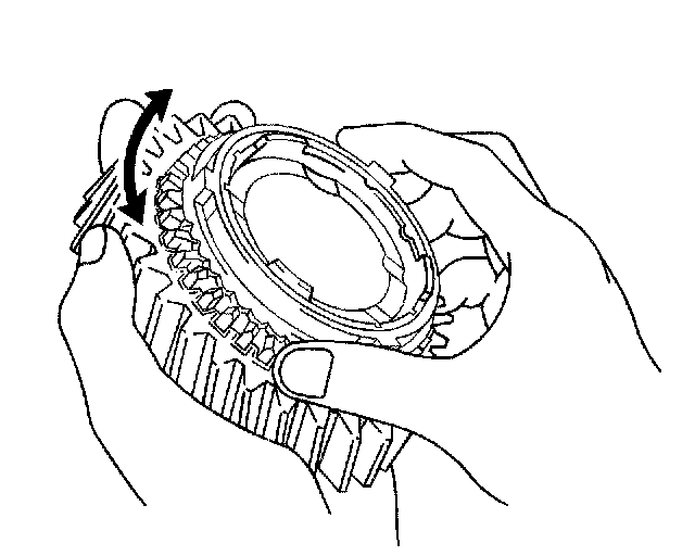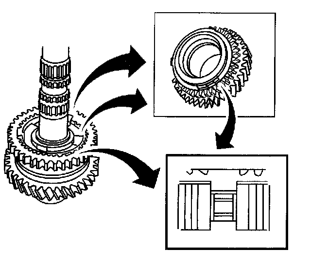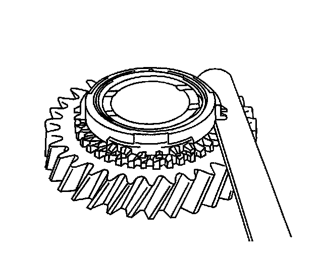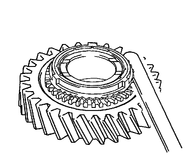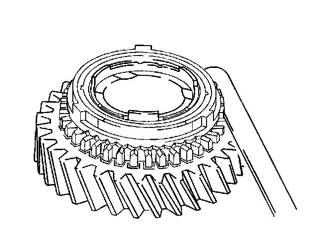 7. Check the 2nd gear braking action of the synchronizer ring. Turn the synchronizer ring in one direction while pushing it into the gear cone. Ensure that the ring locks. Replace the ring if necessary.