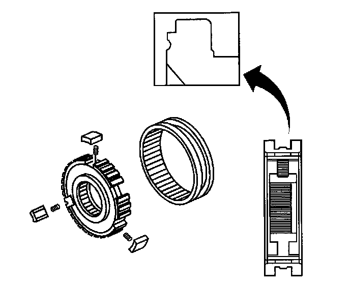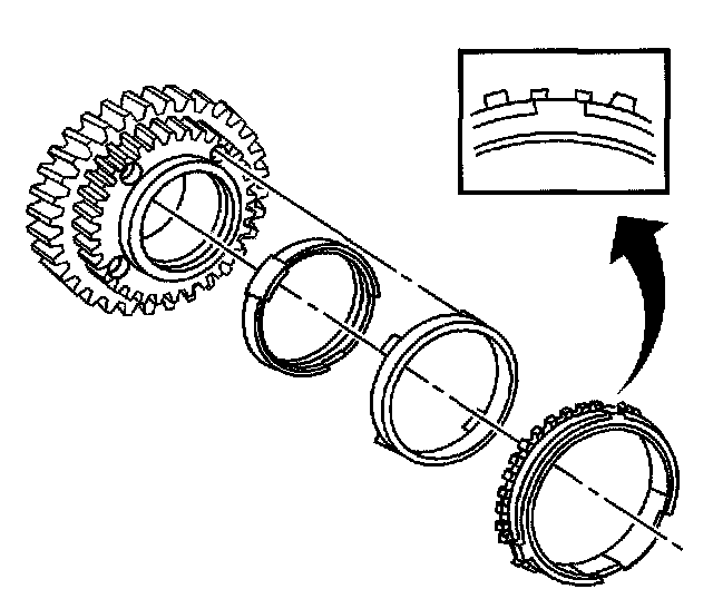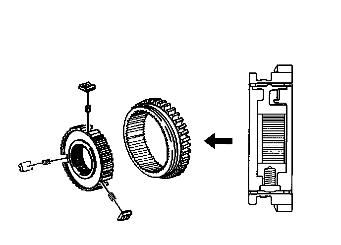 34. Place the No.2 4th gear synchronizer ring on the No.2 Hub sleeve assembly and align the No.2 synchronizer ring slots with the No.2 shifting keys.