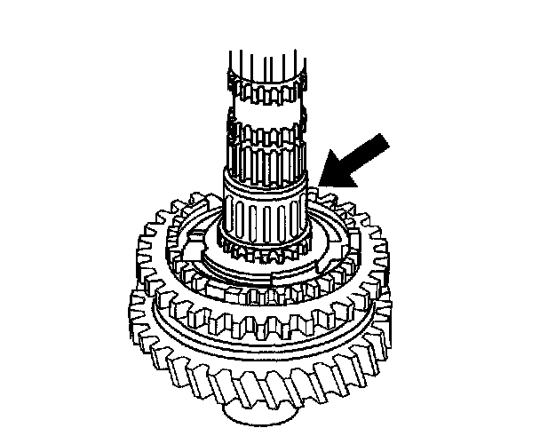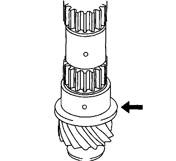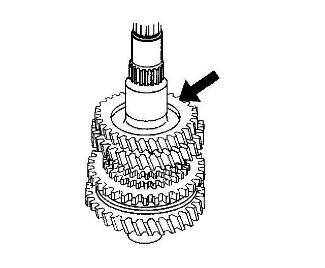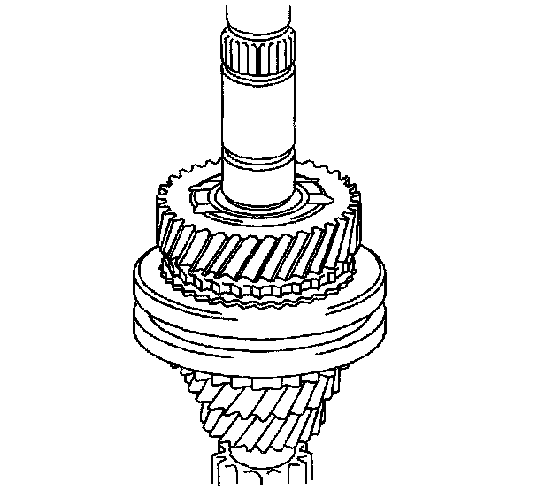 6. Using a feeler gage, measure the clearance between the synchronizer ring and the gear spline end. Minimum clearance is 0.70 mm (0.0276 inch). If the clearance is less than the minimum, replace the synchronizer ring.