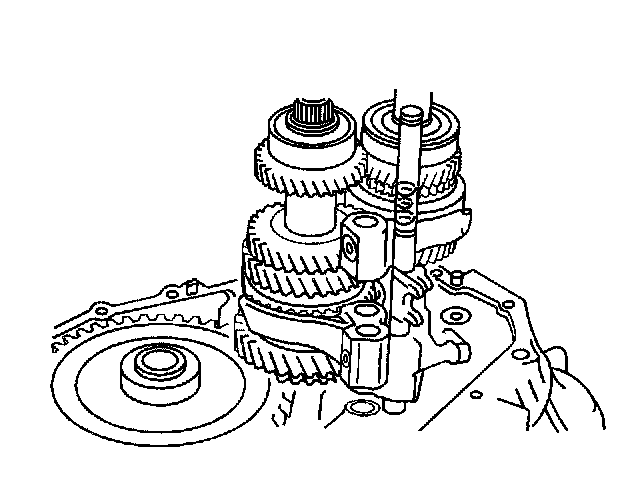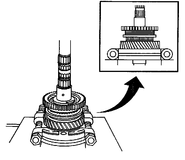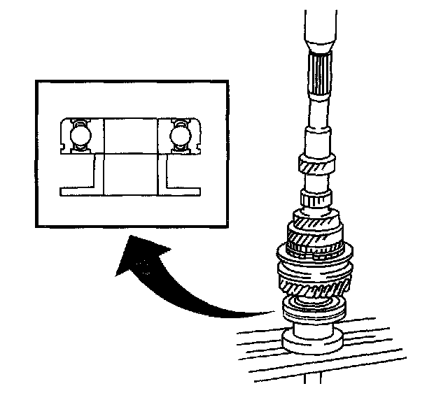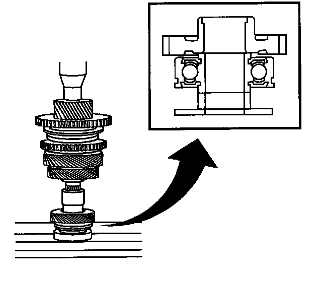 11. Install the snap ring to the output shaft. Select a snap ring that will make the thrust clearance of the front bearing inner race less than 0.1 mm (0.004 inch).