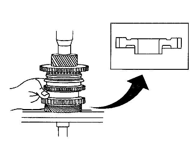 17. Place the reverse gear assembly and align the No.1 synchronizer ring slots with the No.1 shifting keys.